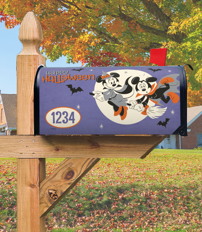 halloween mickey & minnie broom flight – mailbox cover