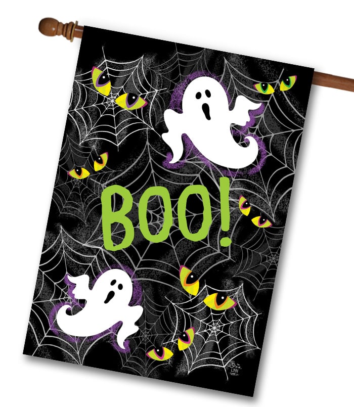 Designed exclusively for you by Gina Linn Wilder, our Halloween Ghosts and Webs – House Flag will add character to your home. This product is a generous – 28″ x 40″ and is made of the highest quality materials. We print each design with care! If you are looking to celebrate Halloween, this will be sure to get you into the spirit and personalize your home or campsite. Looking for the perfect gift for a Birthday, Memorial or Holiday? You will be thrilled with the reaction when they open a House Flag as a gift from you!