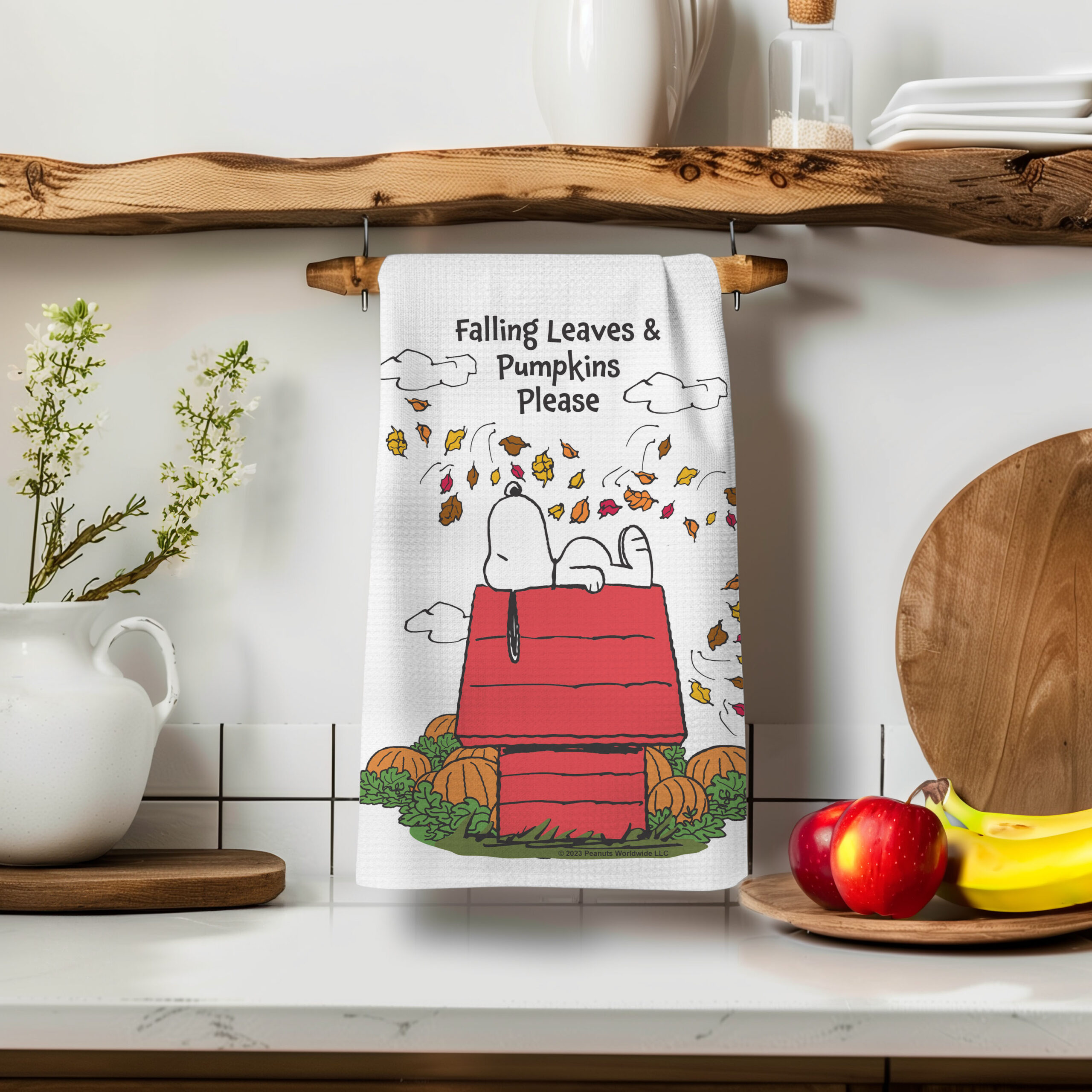 You will love our beautiful Kitchen Tea Towels! This PEANUTS® Falling Leaves & Pumpkins Please Snoopy – Kitchen Tea Towel is designed by Peanuts Worldwide, LLC, and is the perfect gift for yourself.