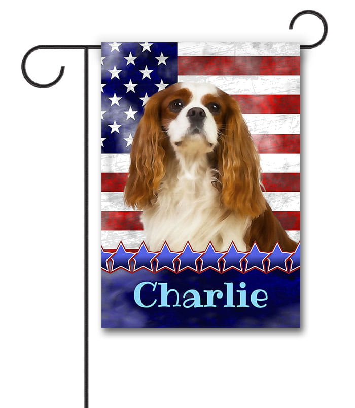 Designed exclusively for you by Dog Image by Barbara O’Brien, our Personalized Stars and Stripes Blenheim Cavalier King Charles Spaniel – Garden Flag will add character to your yard or garden. This product is a generous – 12.5″ x 18″ and is made of the highest quality materials. We print each design with care! Make this Garden Flag your own by adding your Family Name. If you are looking to celebrate Fourth of July, this will be sure to get you into the spirit and personalize your home or campsite. Designed with the dog enthusiast in mind, this Garden Flag features a great looking Cavalier King Charles Spaniel. You will love the way our design features an adorable All Dog Looking for the perfect gift for a Birthday, Memorial or Holiday? You will be thrilled with the reaction when they open a personalized Garden Flag as a gift from you!