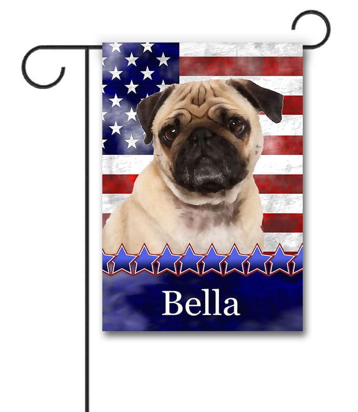 Designed exclusively for you by Dog Image by Barbara O’Brien, our Personalized Stars and Stripes Pug – Garden Flag will brighten your yard or garden. This product is a generous – 12.5″ x 18″ and is made of the highest quality materials. We print each design with care! Make this Garden Flag your own by adding your Family Name. If you are looking to celebrate Fourth of July, this will be sure to get you into the spirit and personalize your home or campsite. Designed with the dog enthusiast in mind, this Garden Flag features a great looking Pug. You will love the way our design features an adorable All Dog Looking for the perfect gift for a Birthday, Memorial or Holiday? You will be thrilled with the reaction when they open a personalized Garden Flag as a gift from you!